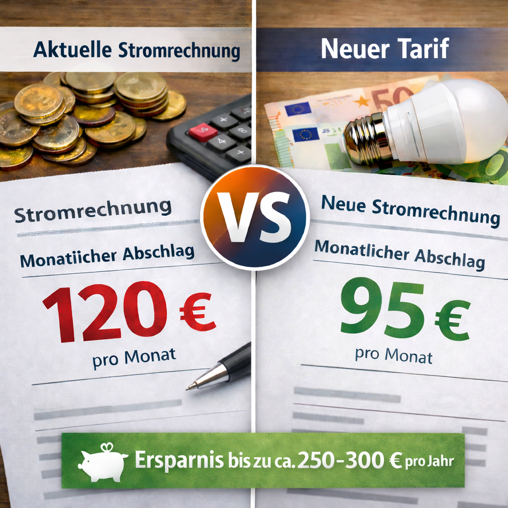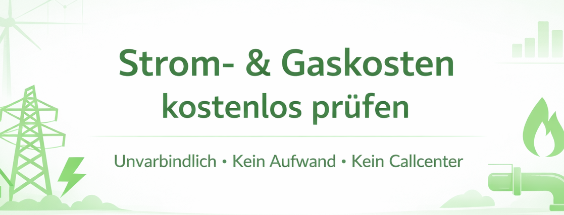 Wir prüfen, ob sich ein Wechsel aktuell lohnt. Kündigung & Abwicklung übernimmt der Wechselservice. Kostenlos per WhatsApp prüfen lassen Persönlicher Ansprechpartner · Kein Verkaufsgespräch Warum viele Haushalte zu viel zahlen Viele Verträge stammen noch aus 2022 oder 2023 Preisänderungen fallen oft erst mit der Jahresabrechnung auf Ein Wechsel kostet nichts, nicht zu prüfen kann teuer sein Beispielhafte Vergleichswert Kleiner Hinweis: Beispielhafte Vergleichswerte. Ersparnis abhängig von Region & Verbrauch. 🎧 Kurz erklärt: So läuft der kostenlose Strom- & Gas-Check ab ▶ ⏸ 1x 1.25x 1.5x 0:00 0:00 Das Audio erklärt den Ablauf, was geprüft wird und wann kein Wechsel empfohlen wird. So funktioniert der Kostencheck Du meldest dich per WhatsAppWir prüfen passende Tarife für Strom & GasEin Wechsel erfolgt nur, wenn es sinnvoll ist 👉 Wichtig: Wenn kein Vorteil entsteht, bleibt alles wie es ist. Deine Vorteile Kostenlos & unverbindlich Kein Aufwand Kein Callcenter Kündigung & Anmeldung werden übernommen Entscheidung liegt immer bei dir 👉 Jetzt kostenlos per WhatsApp prüfen lassen Du schreibst kurz per WhatsApp und wir sagen dir ehrlich, ob es sich lohnt. Jetzt kostenlos prüfen lassen